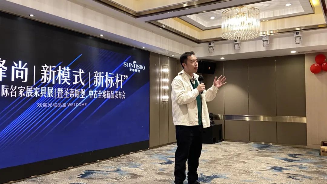 接下来,米兰体育工业营销部副经理吴天喜先生为我们重磅揭晓了2025春季新品中古全案系列和新古典全案升级新品,他从选材、设计、风格、工艺等方面进行了全面的讲解,并提到此次中古新品的全案模式是以更具设计感的创新方式,给予消费者整体性的体验感升级,助力大家在激烈的市场竞争中,突显差异化的优势,实现业绩的飞跃式增长。